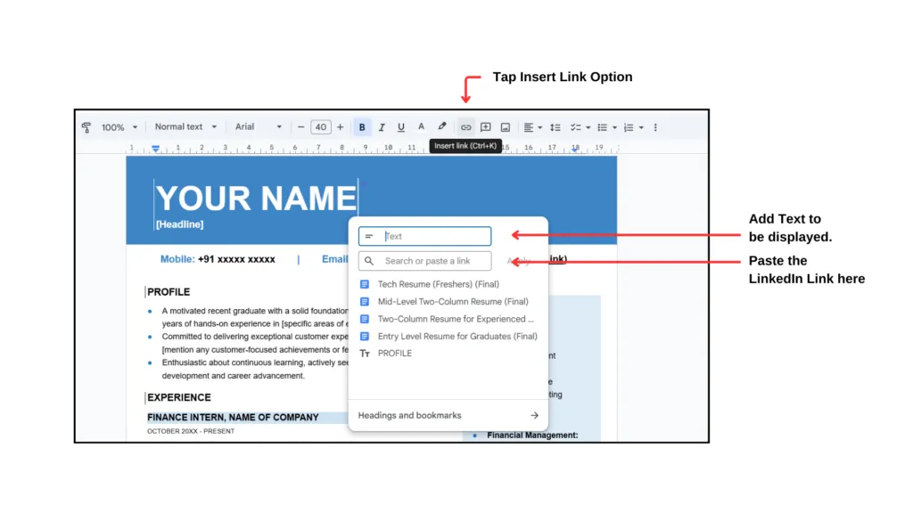 Where to Place Your LinkedIn Profile Link in Resume?